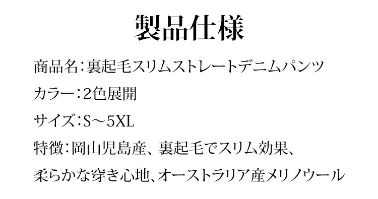 裏起毛スリムストレートデニムパンツ