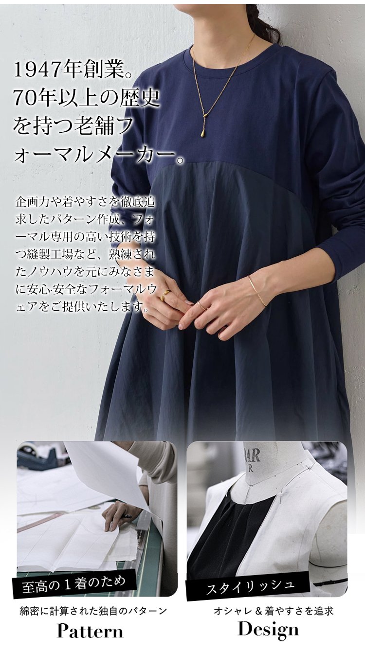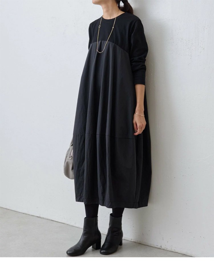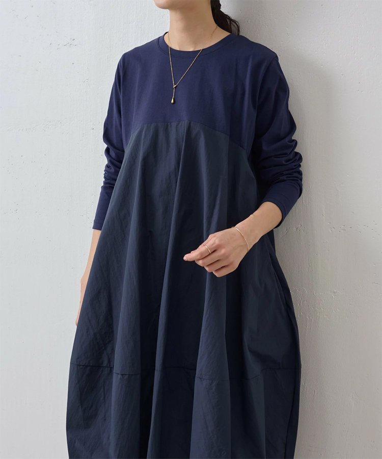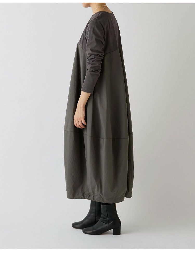 大きいサイズ 長袖 ラウンドネック 切り替えワンピース