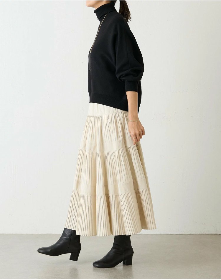 ● ハイウエストデザインで脚長効果抜群、スタイルアップを叶える秋冬定番のプリーツスカートです。