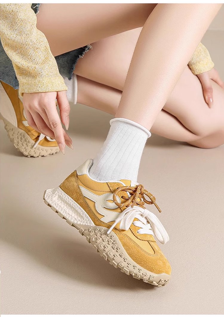 ● スタイリッシュな厚底デザインで、脚長効果を演出しつつ、どんなコーディネートにも合わせやすい万能トレーナーシューズです。